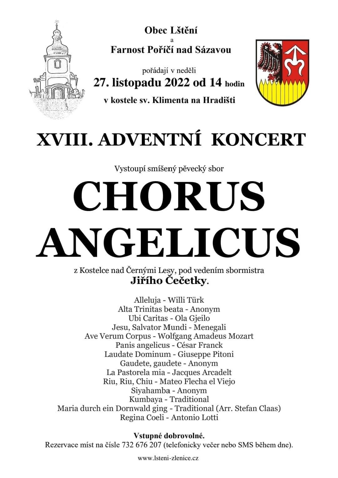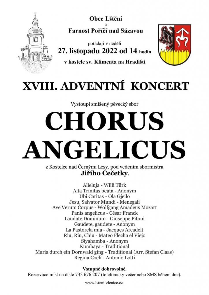 XVIII. adventní koncert v kostele sv. Klimenta na Hradišti se uskuteční v neděli 27.11. od 14 hodin. Vystoupí pěvecký sbor Chorus Angelicus z Kostelce nad Černými Lesy. Vstupné dobrovolné.