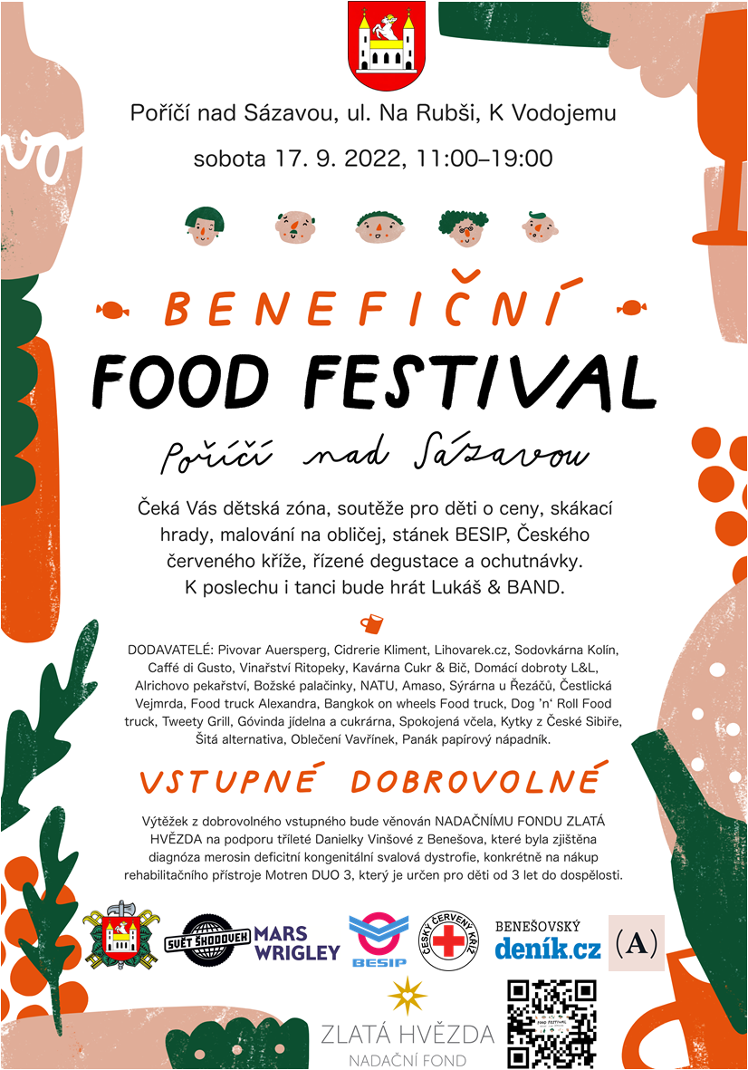 Benefiční food festival Poříčí nad Sázavou, sobota 17.9.