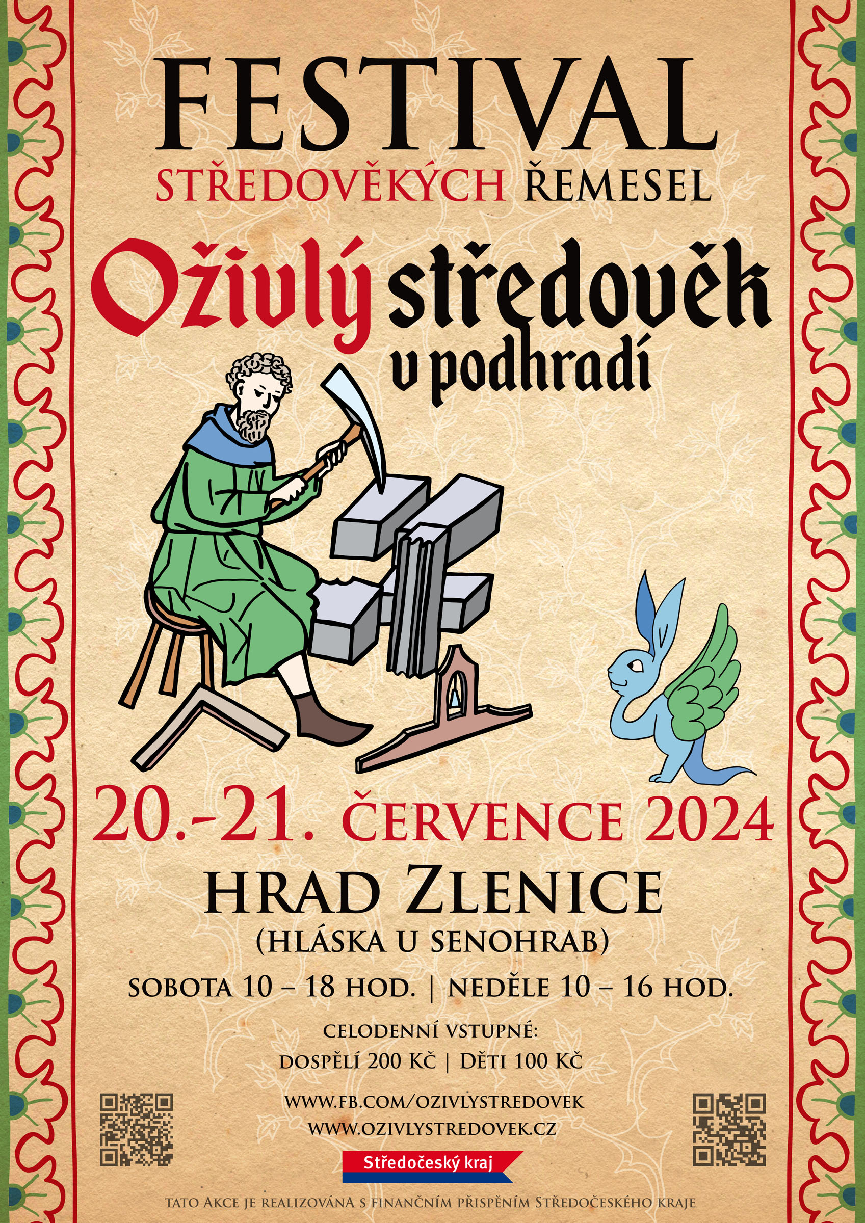 Tradiční festival středověkých řemesel se uskuteční na hradě Zlenice (Hláska u Senohrab) ve dnech 20.-21. července. Řadu řemesel si můžete sami vyzkoušet. Výtěžek z akce jde na účely oprav hradu.