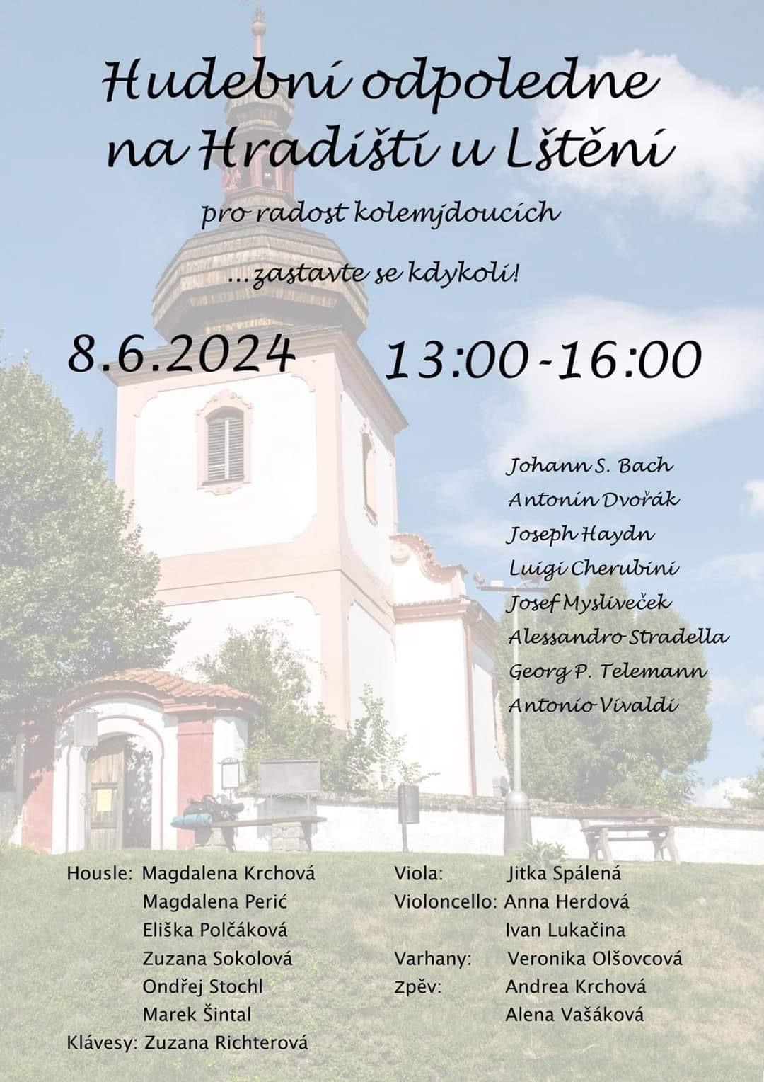 Hudební odpoledne klasické hudby a zpěvu pro radost kolemjdoucích se uskuteční 8.6. od 13 hodin v kostele sv. Klimenta na Hradišti.