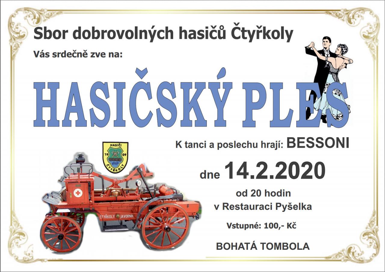 SDH Čtyřkoly zve v pátek 14.2. od 20 hodin na hasičský ples do restaurace Pyšelka. K tanci a poslechu hrají Bessoni, bohatá tombola.
