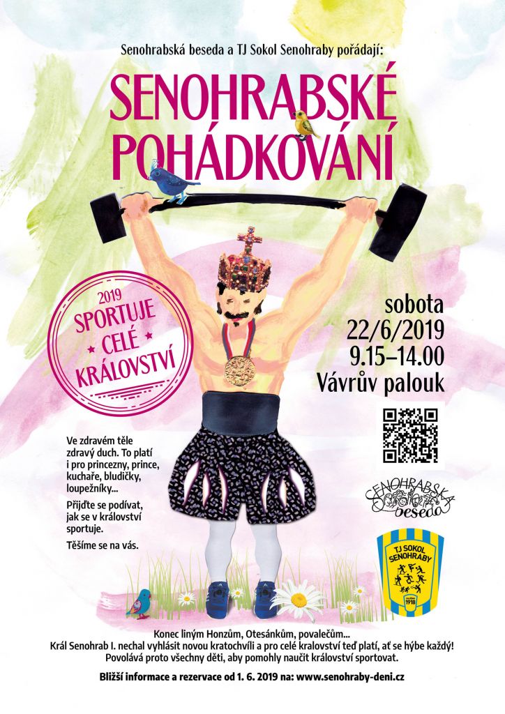 16. ročník Senohrabského Pohádkování již 22.června 2019 na Vávrově palouku v Senohrabech. Připravena je pohádková trasa, bohatý doprovodný program, občerstvení. Start registrace je 1. 6. 2019 v 8:00 hod. Ukončení registrace 18. 6. 2019 ve 12.00 hod. Poté je možná registrace pouze na místě.