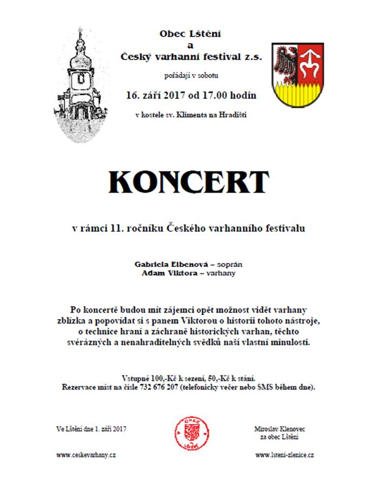 Koncert v rámci 11. ročníku Českého varhanního festivalu se uskuteční 16.9.2017 od 17 hodin. Podrobnosti viz pozvánka.