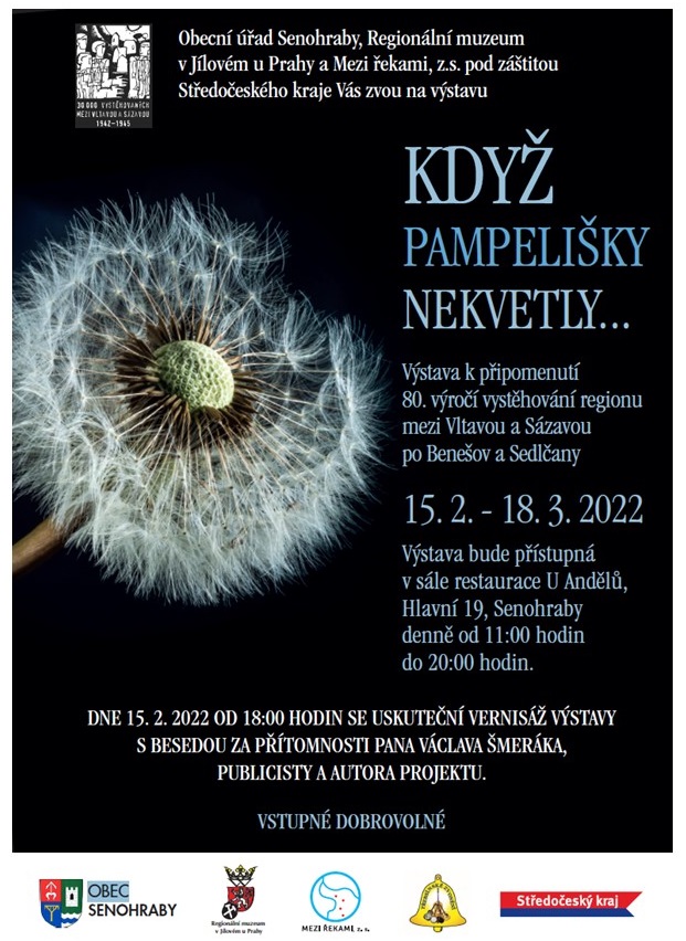 Výstava k připomenutí 80. výročí vystěhování regionu mezi Vltavou a Sázavou po Benešov a Sedlčany se koná od 15.2. do 18.3. v sále restaurace U Andělů v Senohrabech denně od 11 do 20 hodin.